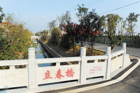 雖然事先在車上已經(jīng)知道了渠面架有24座橋,但好奇心重的讀者陸瑩瑩還是沿著渠邊一邊走一邊認(rèn)真地數(shù),發(fā)現(xiàn)橋上刻有節(jié)氣歌,她還情不自禁為大家讀了起來。“立春橋,立春時在六九頭,嫩刺荷苞現(xiàn)綠雛。春來水有三分熱,龍燈獅子舞千秋。”這24座由居民群眾自行組織建設(shè)的橋,以我國傳統(tǒng)的二十四節(jié)氣為主題,一次命名為“立春橋”、“雨水橋”、“驚蟄橋”等。每座橋均配有相應(yīng)的節(jié)氣簡介、農(nóng)事歌、農(nóng)耕圖和節(jié)氣花。